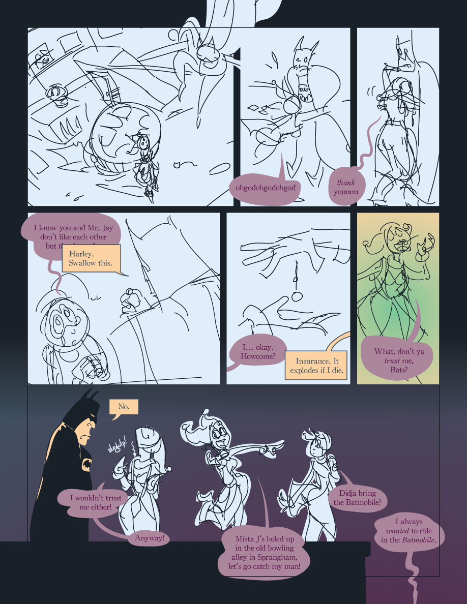 Some conversation on Twitter reminded me of this thing I started on back in 2011 and seem to have never posted. It’s the beginning of a Batman/Harley Quinn teamup story.