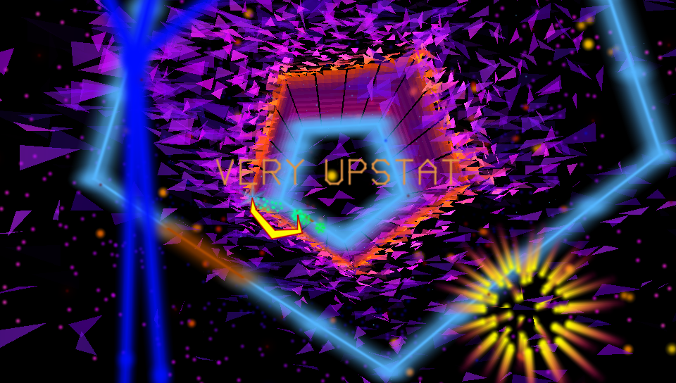 I mean it is also an abstract art piece that occasionally urges you to INGEST CLOCKWORK MALAISE but that’s part of its post-modern charm. It’s much less self-deconstructing than Minter’s previous take on this theme; Space Giraffe was a deliberate inversion of the Tube Shooter in a lot of ways. And SG occasionally became a little too self-aware – the dreamy atmosphere of its bonus rounds were constantly punctured by comedy burps. TxK is more interested in being a pure, polished instance of its theme, and thus keeps the deconstruction to the sides.