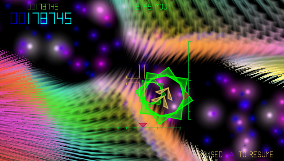 I have this sudden urge to write a review that starts “With TxK, Jeff Minter has established himself as one of the preeminent abstract artists of this age.” I would then go on to establish a context firmly grounded in abstract art, thoroughly ignoring Minter’s strong identity as A Maker Of Games. Because I kinda feel like it DOES stand on its own as an art piece. It’d be totally at home next to one of Kandinsky’s abstractions – maybe as an eternal video loop playing itself, maybe as a framed screen with a set of controls mounted beneath it.