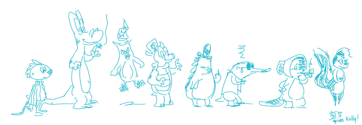 L-R: Pogo Possum, Albert Alligator, Howland Owl, Churchy La Femme, Porkypine, Mole, Miz Beaver, Mam’zelle Hepzipah. Some are more off-model than others.