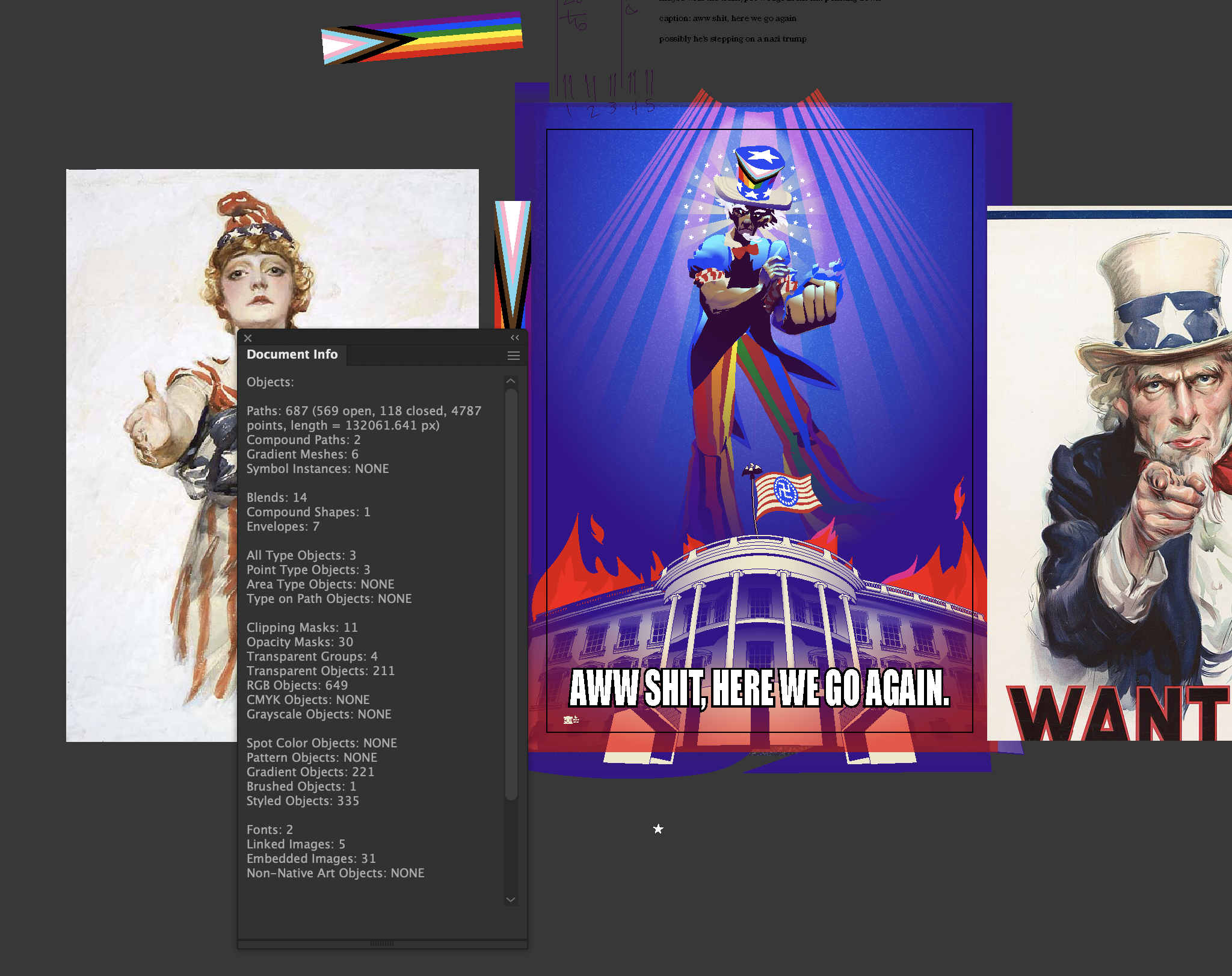 This one took lots longer than it should have; creating an intertwine group while drawing the jewelry caused Illustrator to start crashing when I’d attempt to save, and I spent like two hours fighting against this until I finally decided to track down what the problem was. Guess I’m putting a big asterisk next to that feature in my head, it’s nice when it works but it sure can make some trouble when I use it with my insanely complicated appearance stacks.