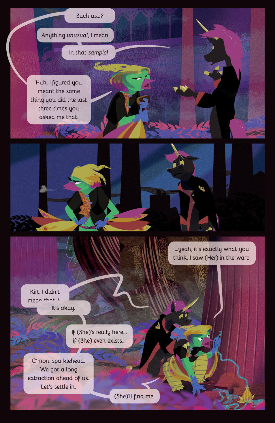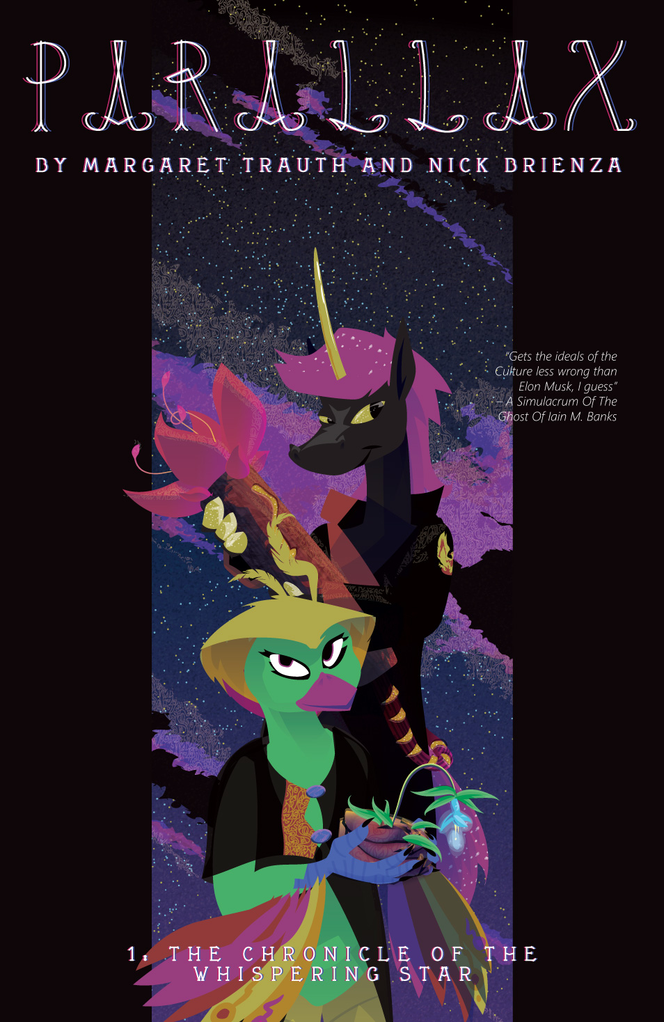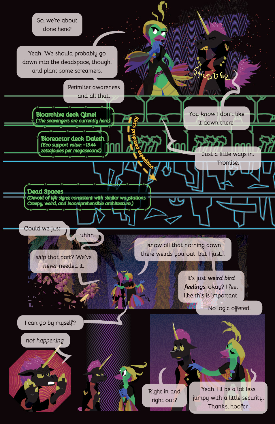 Hey hi welcome to the work-in-progress version of Chapters 1 of Parallax. Hopefully you are either one of our wonderful patrons or someone else awesome we’ve handed the link to. Generally this gets updated with the latest versions of everything when a new page goes up on Patreon.