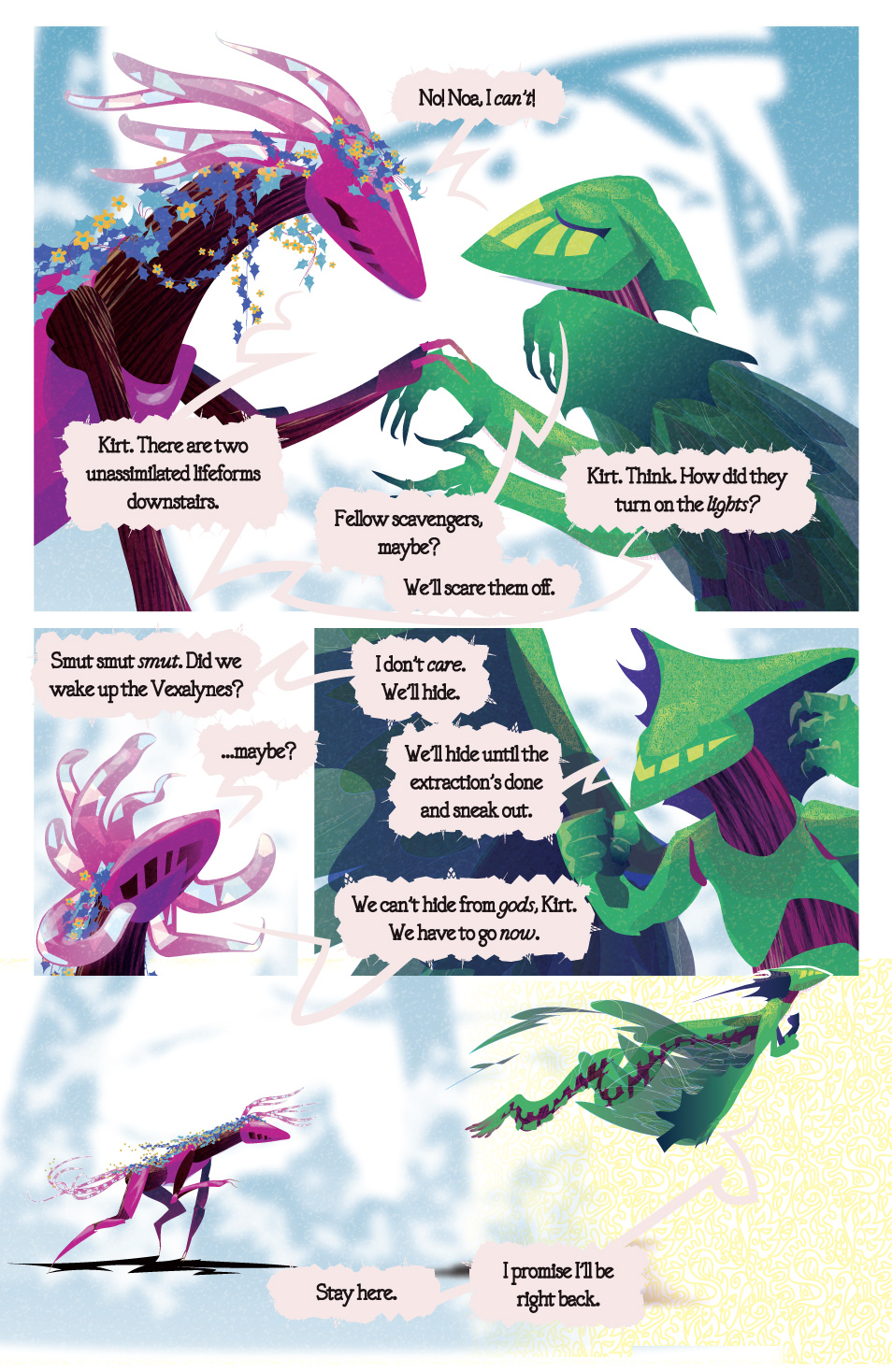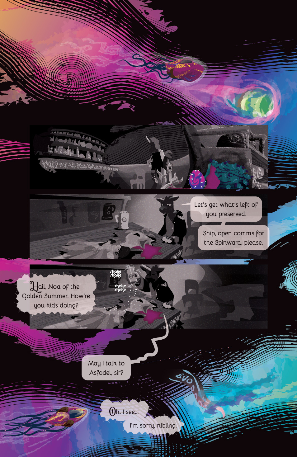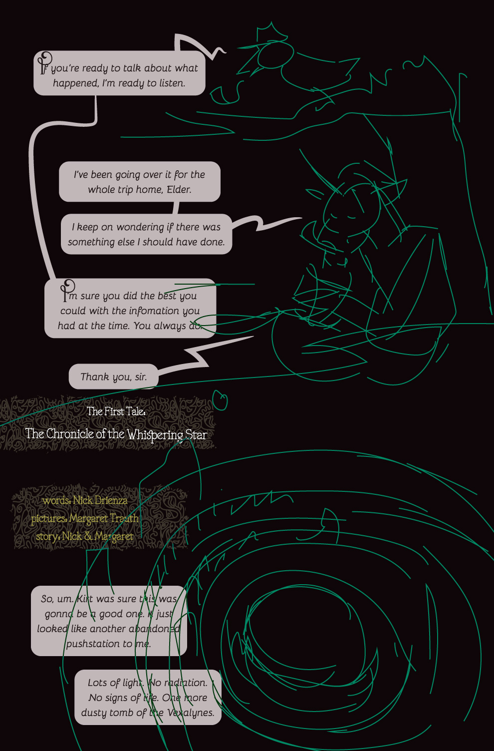 Hey hi welcome to the work-in-progress version of Chapters 1 of Parallax. Hopefully you are either one of our wonderful patrons or someone else awesome we’ve handed the link to. Generally this gets updated with the latest versions of everything when a new page goes up on Patreon.