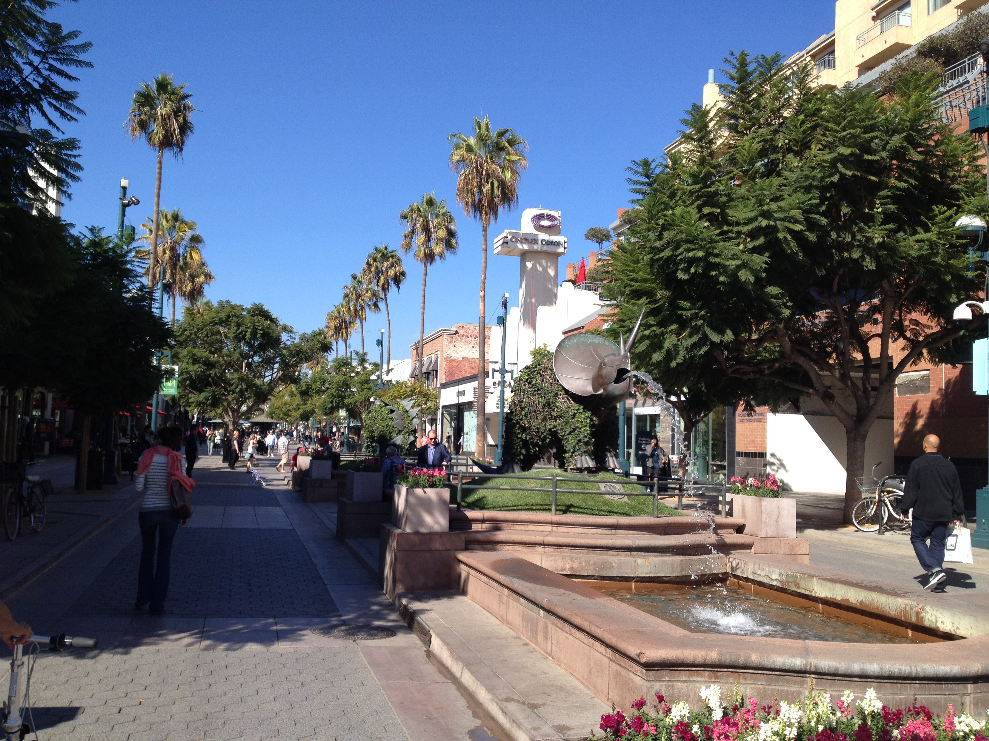 Finally, I made it into Santa Monica, and got off at the Third Street Promenade. Which looked pretty much unchanged from what I remembered, from that point of view. I was a little worried, as the shopping mall at one end of this three-block stretch of pedestrian-only streets had been transformed into a lovely open-air mall like the one they’d opened at Hollywood and Vine while I lived in LA; I’d seen that one suck all the commerce off of Hollywood and into itself, which was pretty depressing.