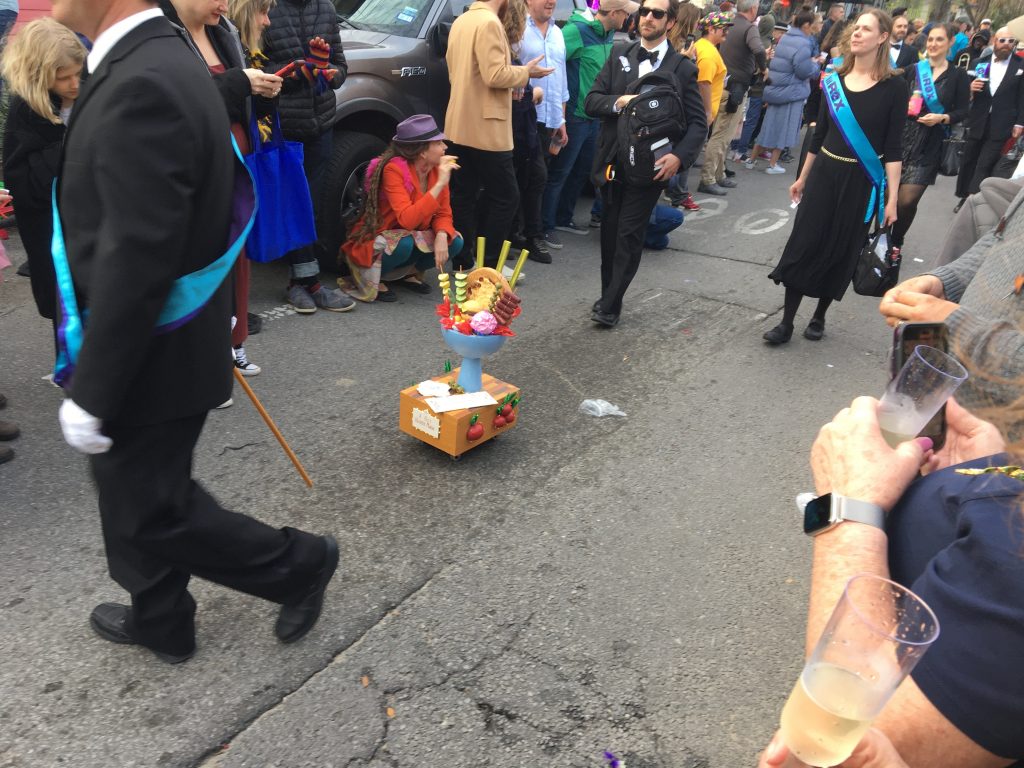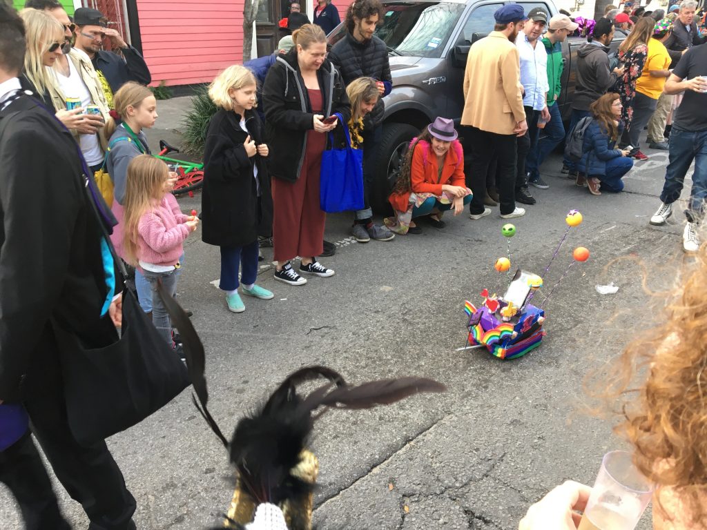 Last night: Krewe of Freret, my first parade with Actual Floats since I’ve moved back here. Unless catching Zulu and Rex last year before looking for a place counts? I’m gonna say nope.
