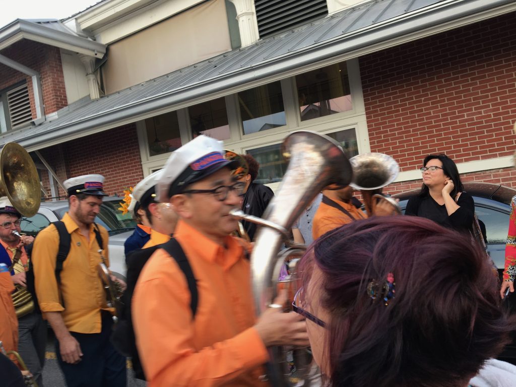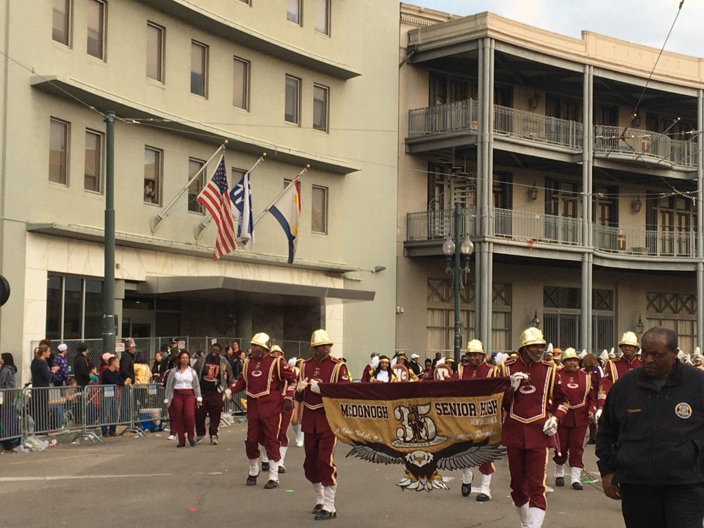 - Ah yes. High school marching bands. I have not stood next to a high school marching band in full blast since something like the mid-eighties and, damn, that sound shook something deep inside and had me on the verge of tears. Clear out the old year, get ready for the new.