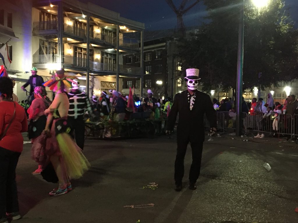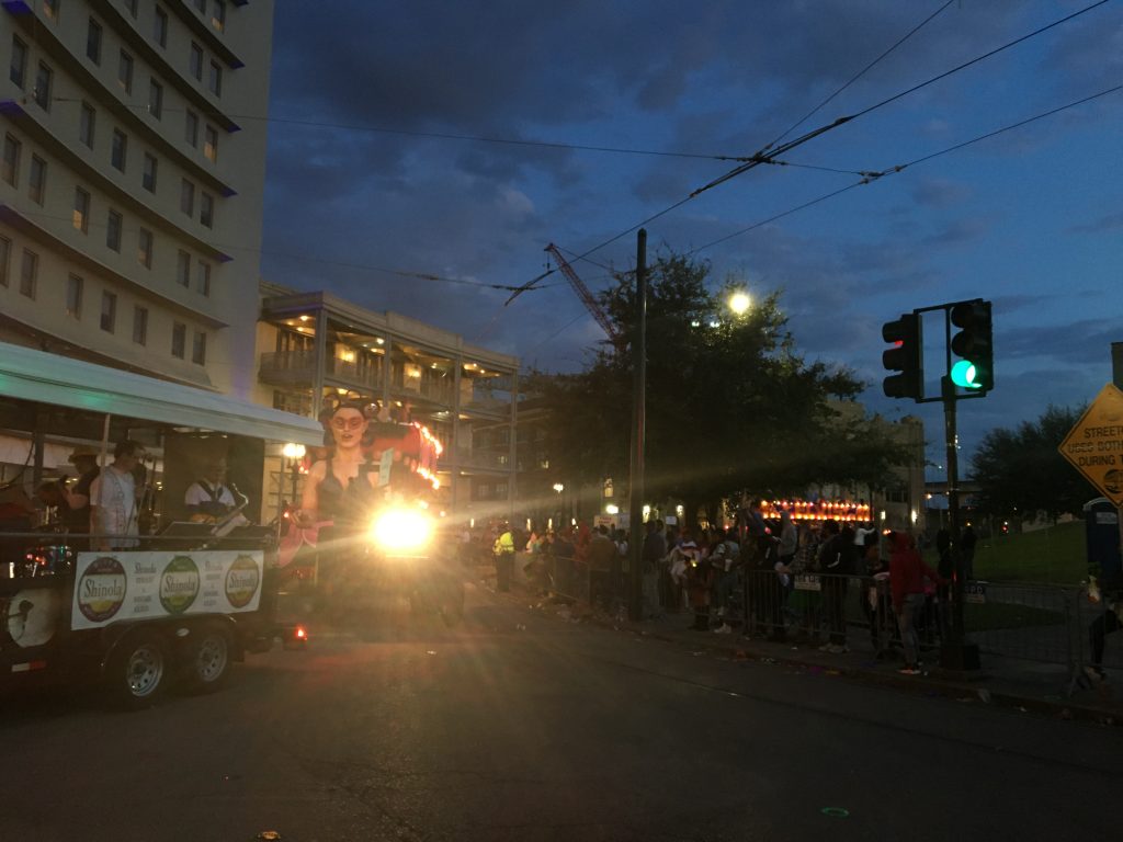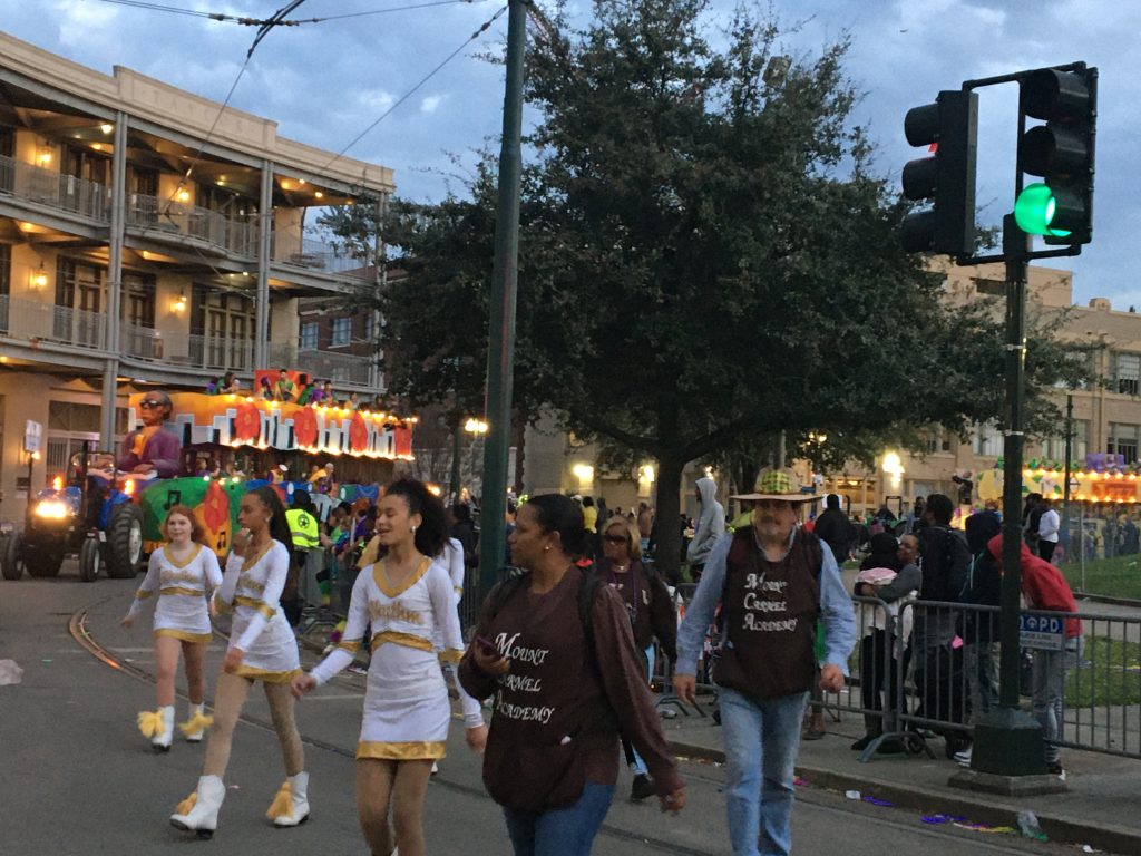 I could have stuck around for Knights of Sparta and Pygmalion along the same route a little later, but I was tired, and out of phone battery, so I just went home. Today’s all day parades, looks like. Do I wanna go to the Quarter for the absurdity of Barkus, the Dog Parade? Or go explore a different part of the Uptown-to-CBD route and catch part of Femme Fatale, Carrolton, and King Arthur? Also why the hell is King Arthur uptown instead of across the river on the West Bank where it used to be? Never mind that Carrolton goes nowhere near the neighborhood it’s named for. Things have changed since I was a kid, there’s been a lot of route consolidation in the name of scarce city resources to manage traffic, keep the peace, and have emergency services handy…