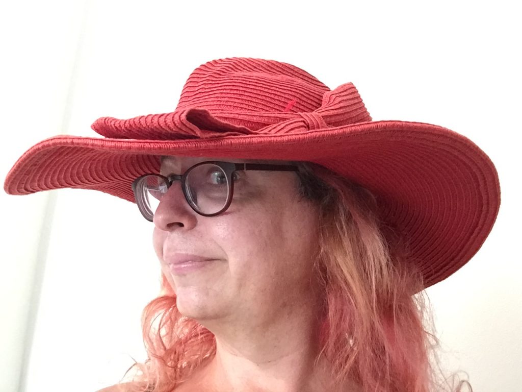 I really need to keep my eyes open for more straw hats of various colors; I had another red one that seems to have gotten left somewhere recently, and there used to be a black one, too, and I feel like I am at the stage of my life where a purple one could work… they’ll show up when I need them, I’m sure.