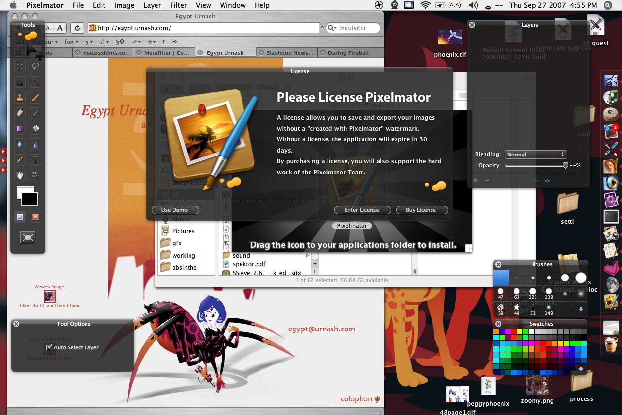 ↑ junk ← newer older → ↑ junk ← newer older →pixelmator September 27, 2007 Pixelmator. I guess this is ‘the image editor for the rest of us who always run everything in fullscreen’.