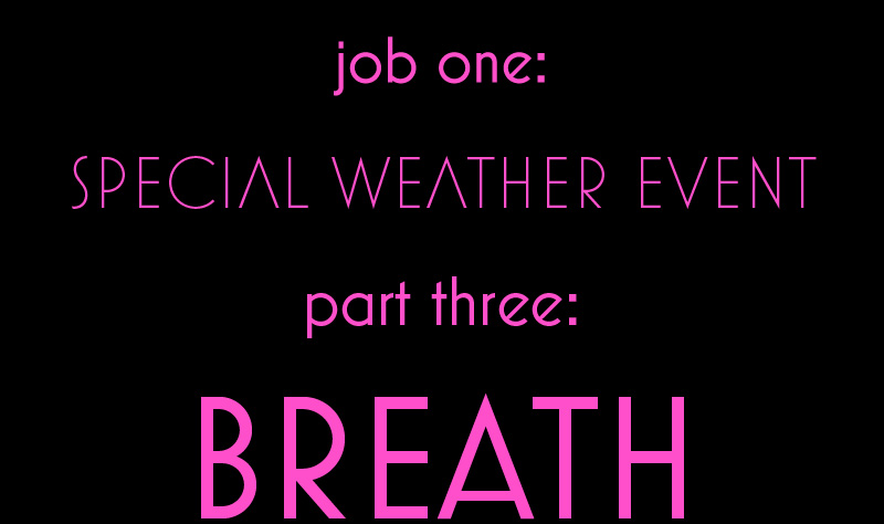 The Special Weather Event is spilling out of the Foodclown Foodfunhut and that really doesn’t look very good but Jobclown said the job was done so I guess… it’s… okay?