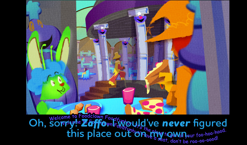 Originally the drawing of Funbistro 5 was going to be at the bottom of the last page but I decided it needed to dominate an entire spread and think this was a good decision. Mostly because it made me replace it with a panel of Alba going quietly insane while “Now That’s What I Call Funtrain! (3h of Dubtwonk Reversal)” plays.