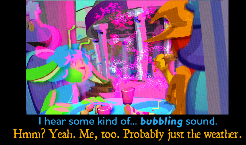 It is totally normal for holographic clowns to pop out of your cleavage and evaluate your friends’ performance. Zaffo is probably enjoying this more than she really should.